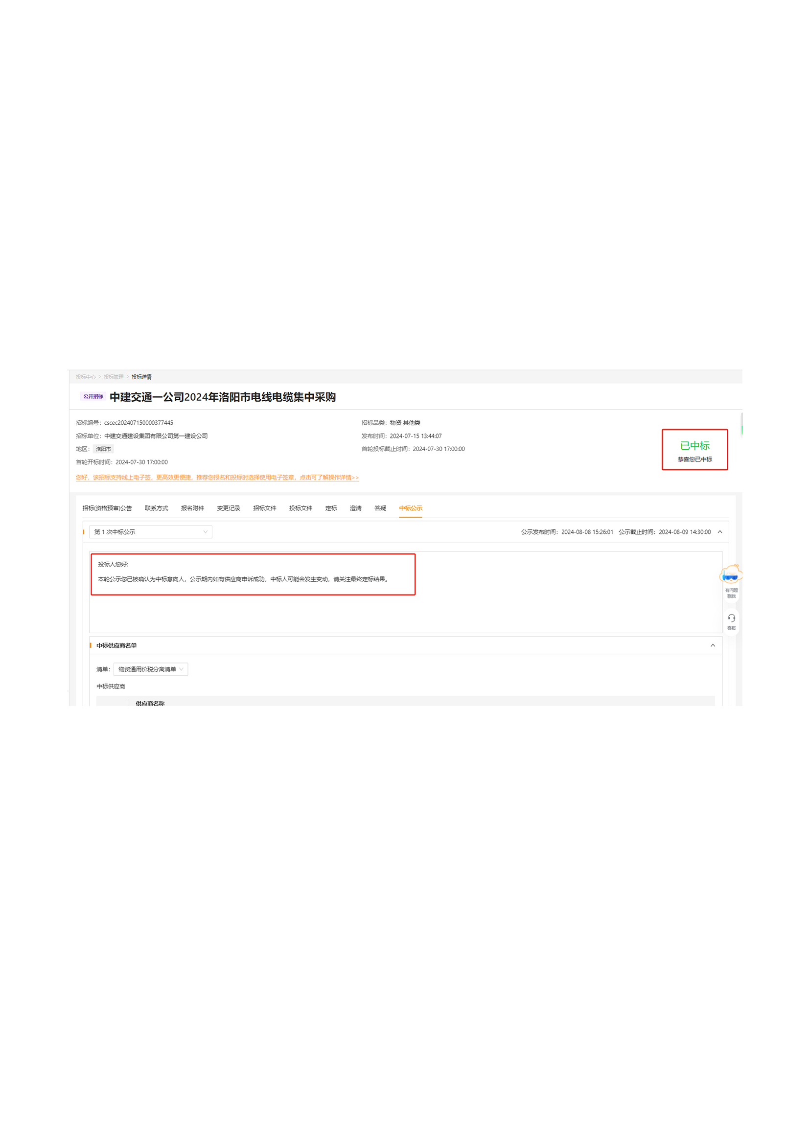 (إعلان الفوز بالعطاء) شركة China Construction Communications No.1 تقوم بشراء الأسلاك والكابلات بشكل مركزي في مدينة لويانغ في عام 2024