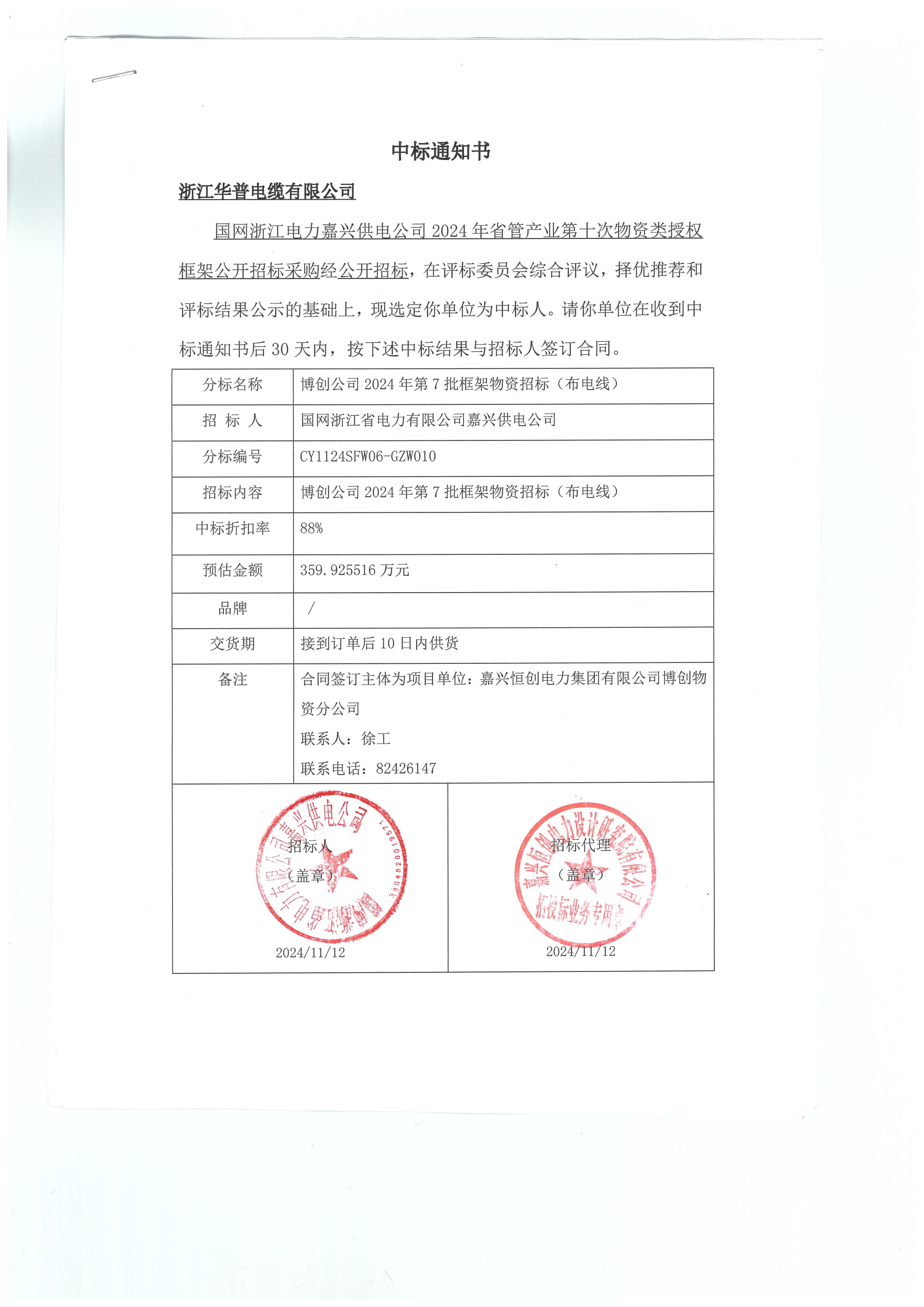 (إخطار بالجائزة) شبكة الكهرباء الحكومية شركة تشجيانغ للطاقة الكهربائية جياشينغ لإمدادات الطاقة الإدارة الإقليمية العاشرة إطار ترخيص المواد الصناعية العطاءات العامة والمشتريات في عام 2024