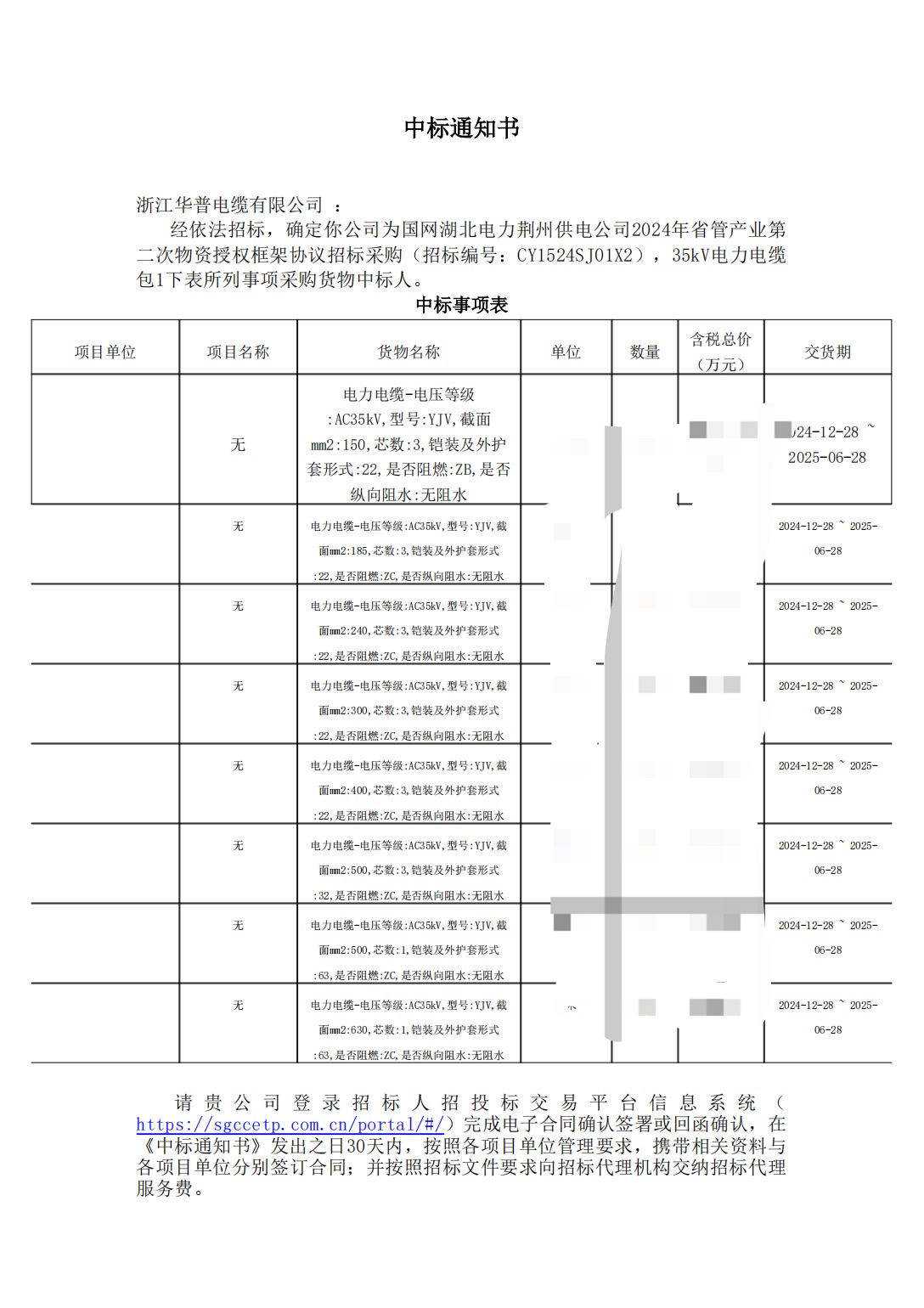 (إشعار الفوز بالعطاء) اتفاقية إطار ترخيص المواد الثانية لصناعة إدارة المواد الإقليمية لشركة Hubei Electric Power Jingzhou Power Supply Company لعام 2024 - العطاءات والمشتريات