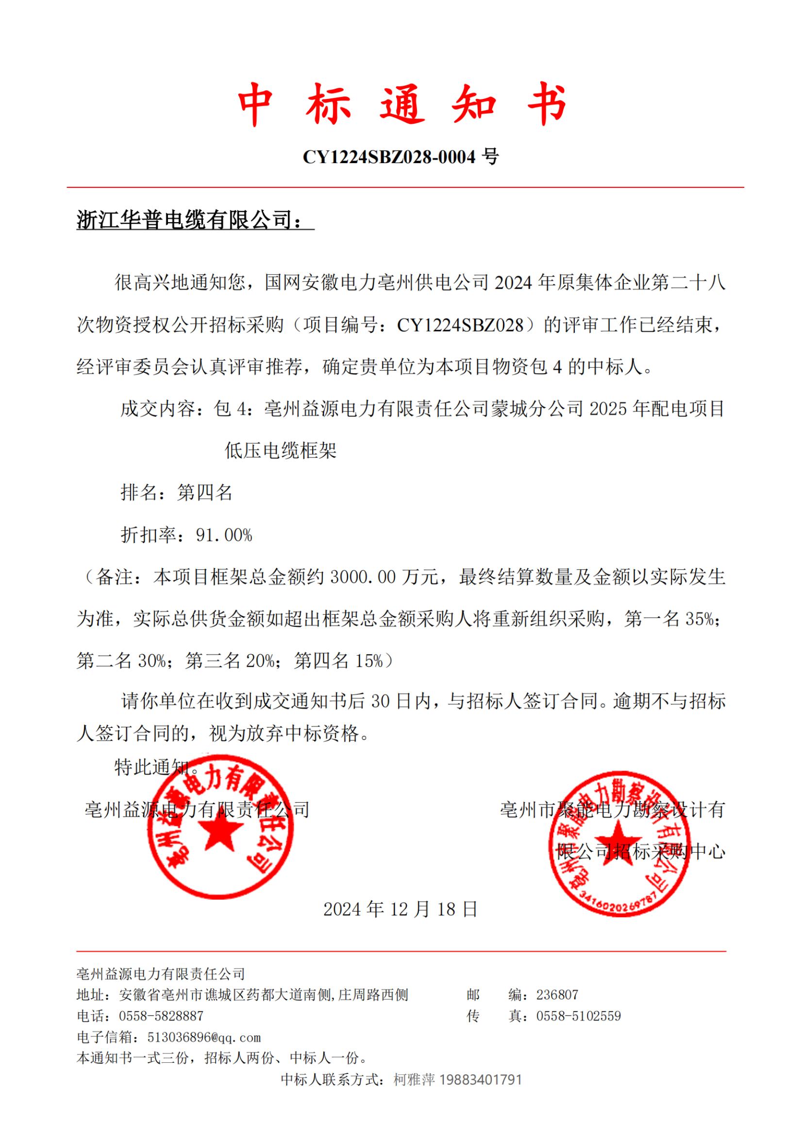 (إخطار بالجائزة) شركة شبكة الكهرباء الحكومية آنهوي للطاقة الكهربائية شركة بوتشو لإمدادات الطاقة تقدم العطاءات العامة الثامنة والعشرين وترخيص شراء المواد للمؤسسات الجماعية الأصلية في عام 2024