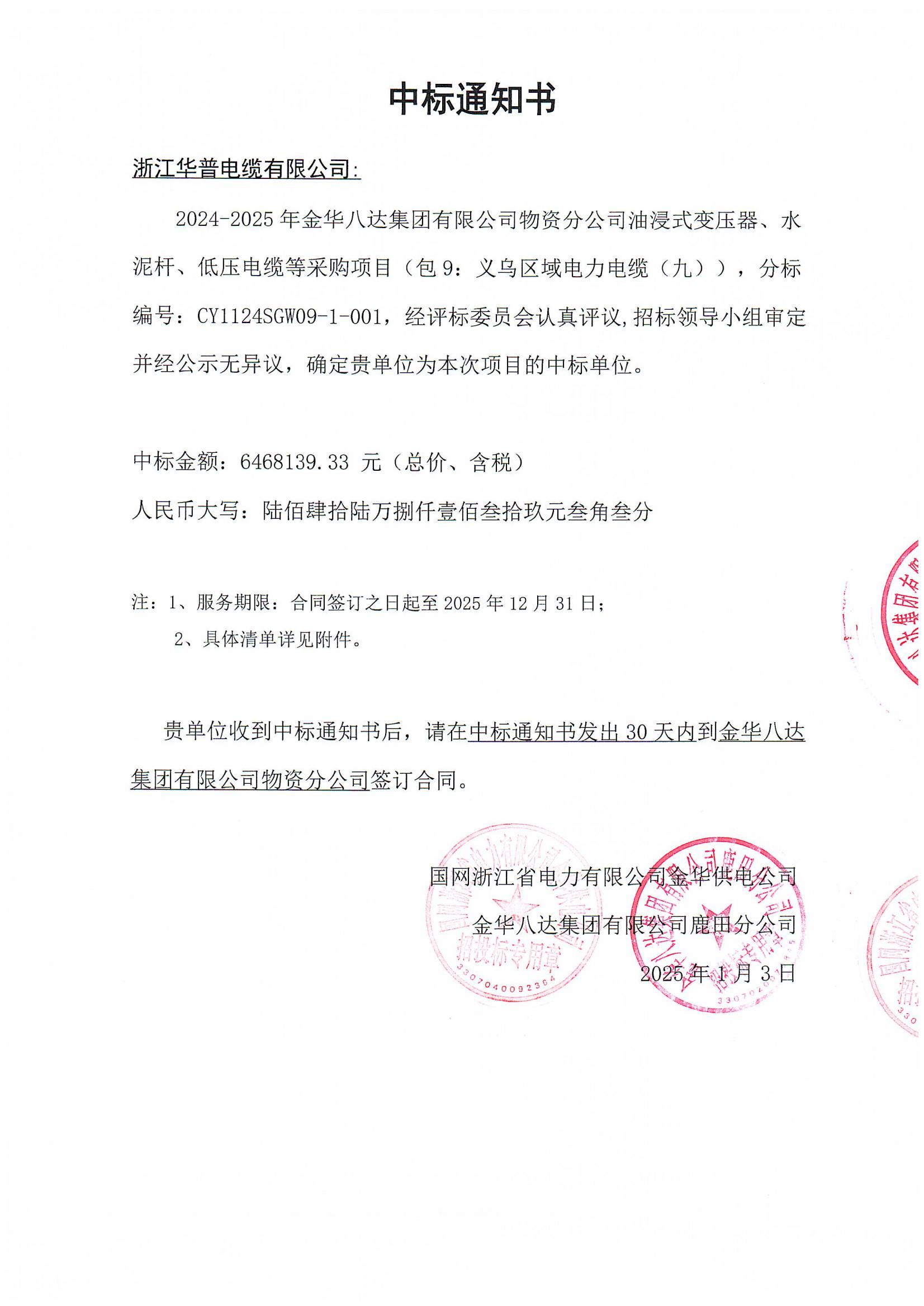 (إخطار بالجائزة) إطار ترخيص المواد الصناعية للإدارة الإقليمية الثالث عشر لشركة State Grid Zhejiang Jinhua Power Supply Company للمناقصات العامة والمشتريات في عام 2024